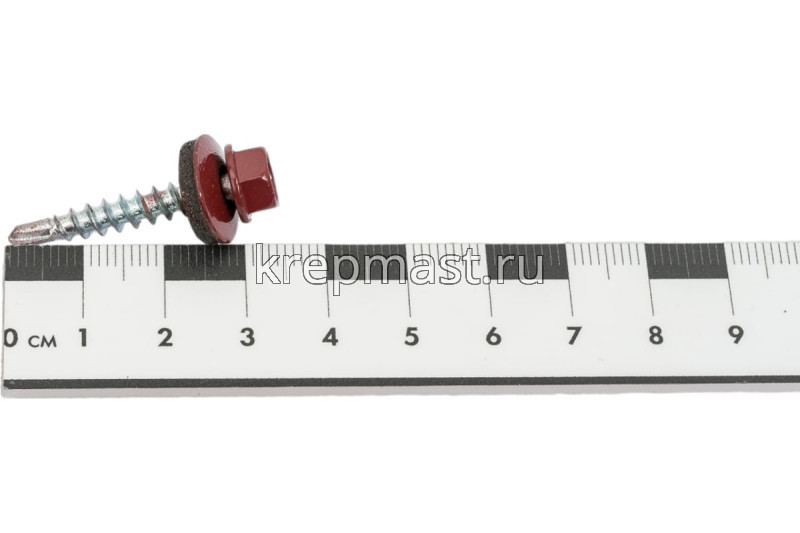 Кровельный саморез окрашенный с шайбой и резиновой прокладкой EPDM DIN 7504 4,8 х 35 по дереву RAL 3005 (цвет винно - красный) - представляет из себя саморез с шестигранной головкой, фланцем и резиновой прокладкой для эффективного прижатия листового металла к основанию.
