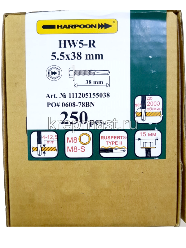 Саморез кров. б/шайбы 5,5х38 HARPOON 6-гр- сверло в Набережных Челнах