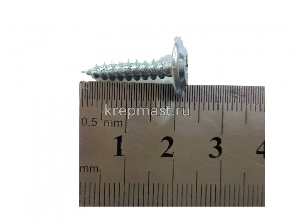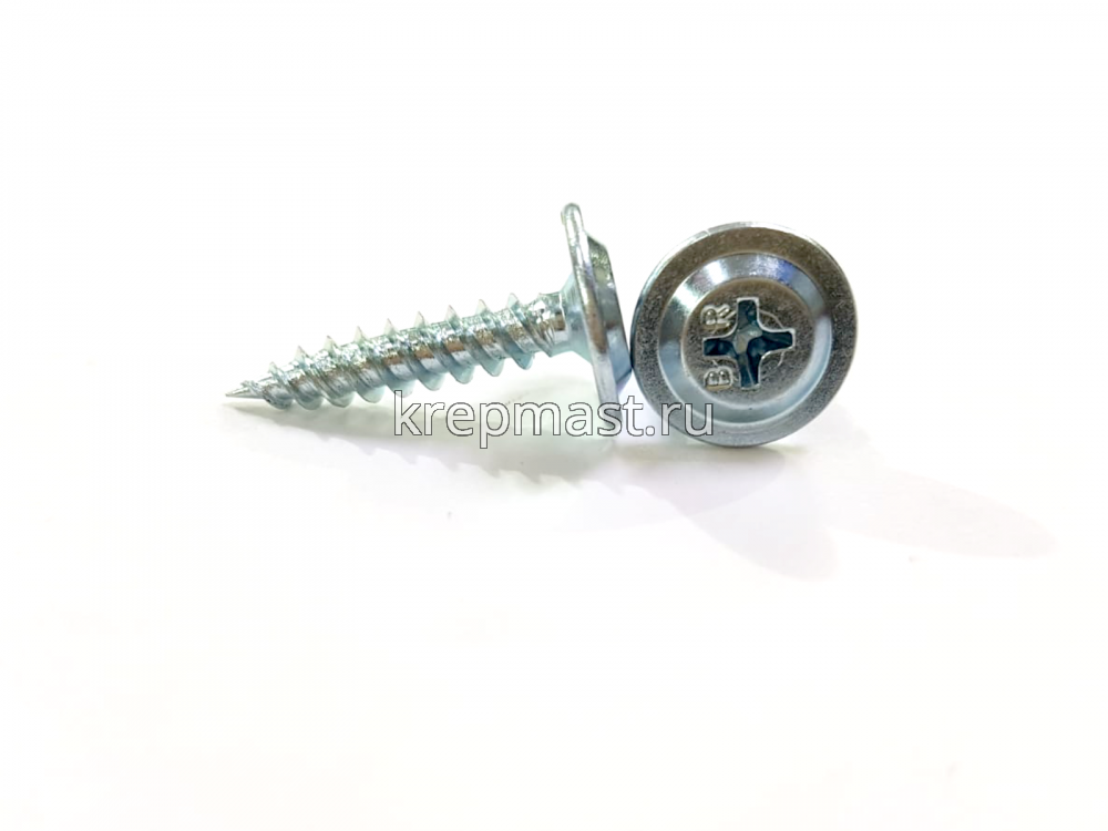 Саморез с пресс-шайбой имеет резьбу с мелким шагом и острый конец. Способен просверливать металл толщиной 0,9 мм.