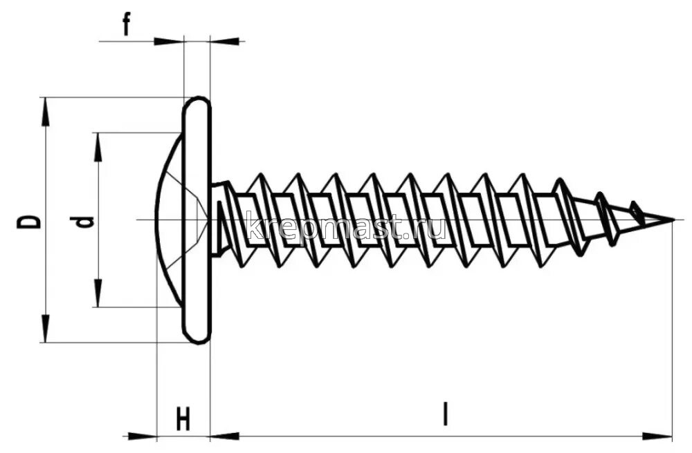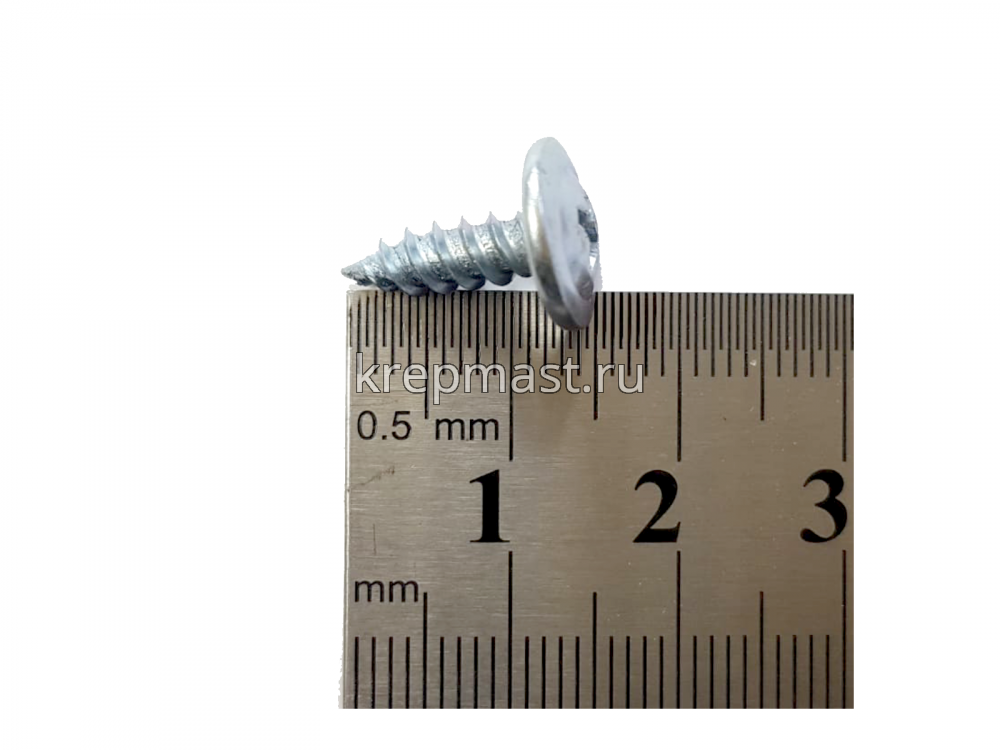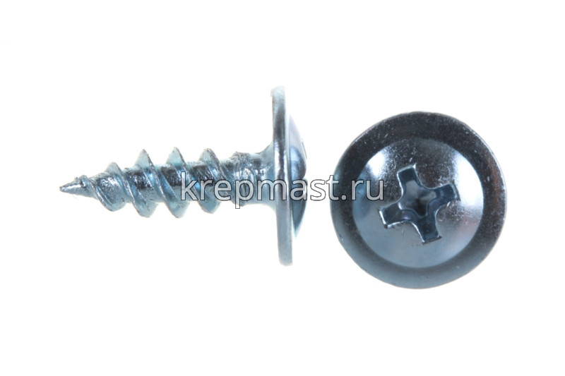 Саморез с пресс-шайбой имеет резьбу с мелким шагом и острый конец. Способен просверливать металл толщиной 0,9 мм.