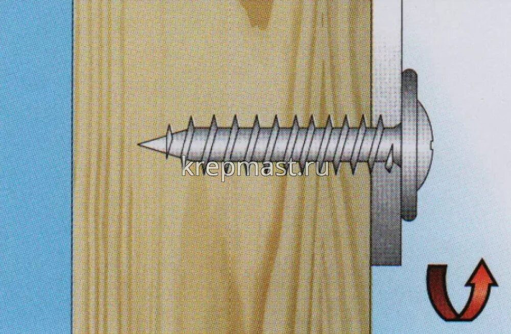 Саморез с пресс-шайбой имеет резьбу с мелким шагом и острый конец.