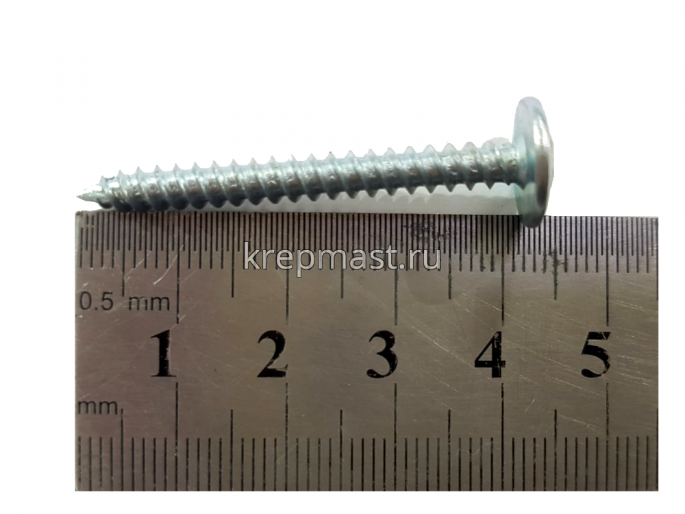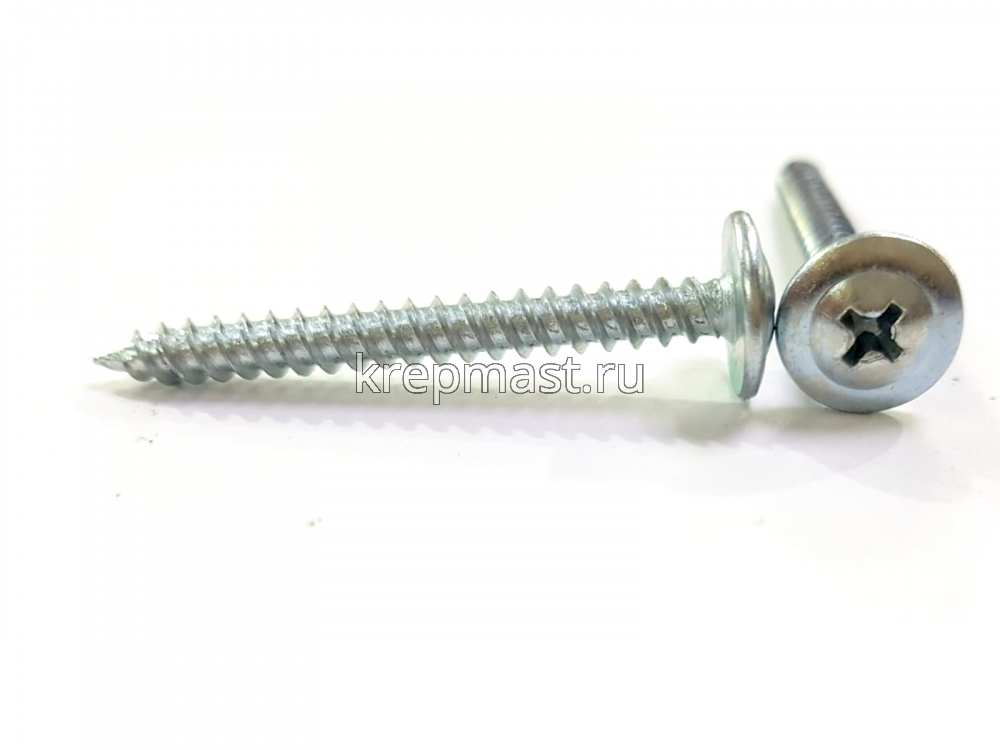 Саморез с пресс-шайбой имеет резьбу с мелким шагом и острый конец. Способен просверливать металл толщиной 0,9 мм.