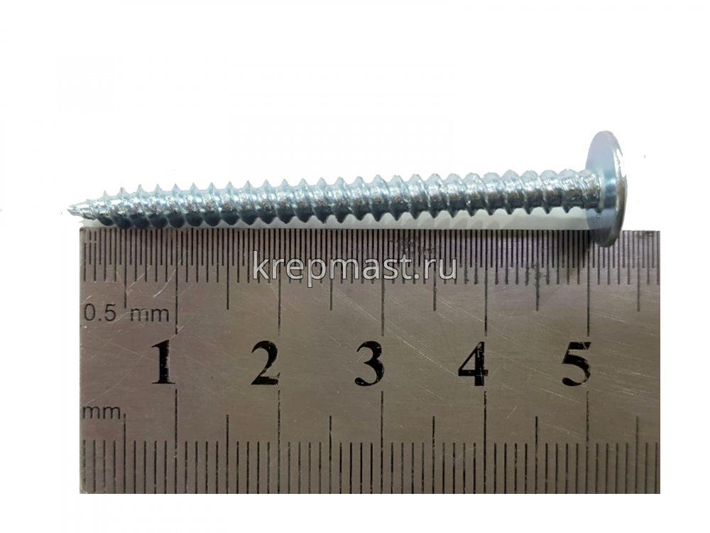 Саморез по металлу с полусферической головкой и пресс-шайбой, острый наконечник 4.2 x 51 применяется для отделочных работ и в мебельном производстве.