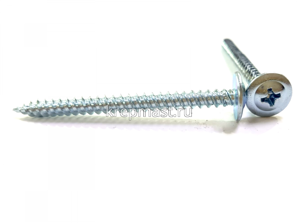 Саморез с пресс-шайбой имеет резьбу с мелким шагом и острый конец. Способен просверливать металл толщиной 0,9 мм.