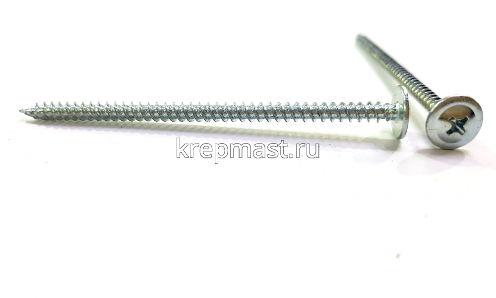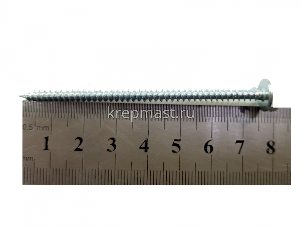 Саморез по металлу с полусферической головкой и пресс-шайбой, острый наконечник 4.2 x 76 применяется для отделочных работ и в мебельном производстве.