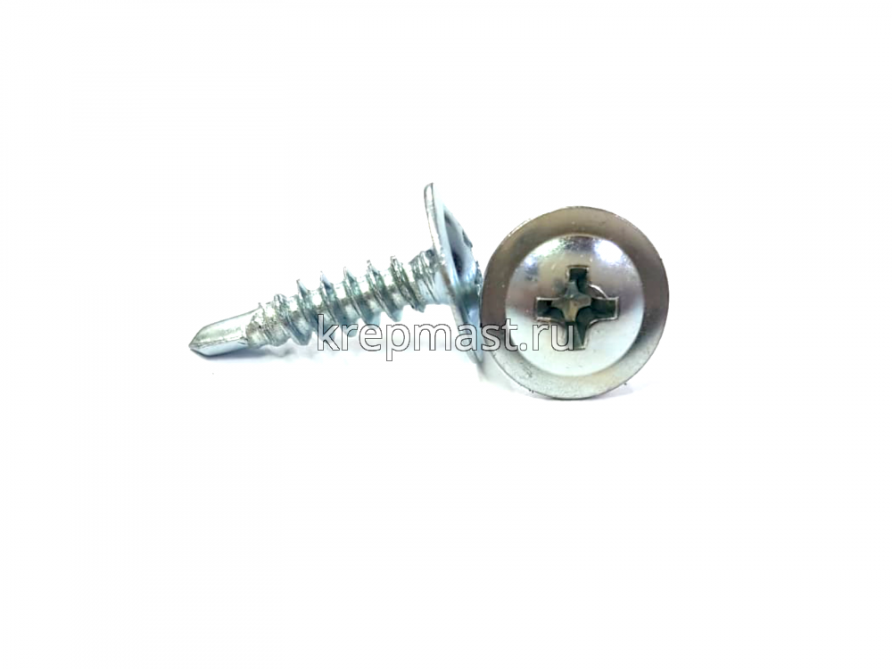 Саморез по металлу с полусферической головкой и пресс-шайбой со сверлом 4.2 x 16 применяется для отделочных работ и в мебельном производстве.