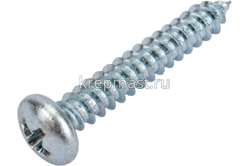 Саморез по металлу с полусферической головкой и острым концом DIN 7981 4.2 x 25 применяется для крепления стальных и других листовых материалов (дерево, фанера) к металлическим и деревянным несущим конструкциям.