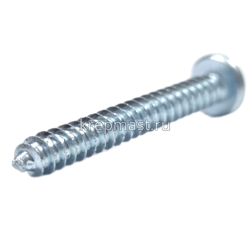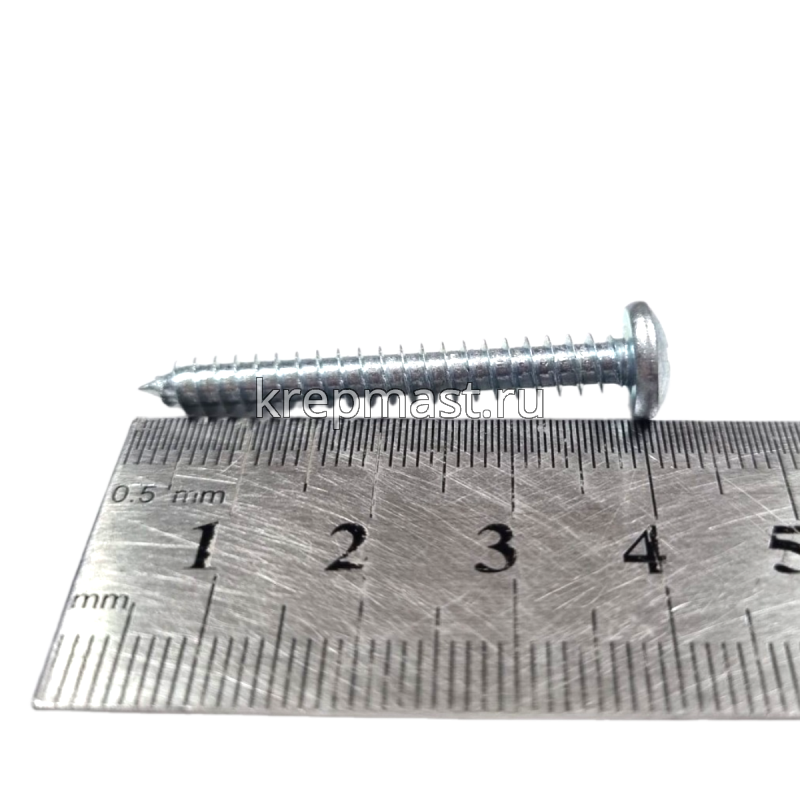 Саморез по металлу с полусферической головкой и острым концом DIN 7981 4.8 x 38 применяется для крепления стальных и других листовых материалов (дерево, фанера) к металлическим и деревянным несущим конструкциям.