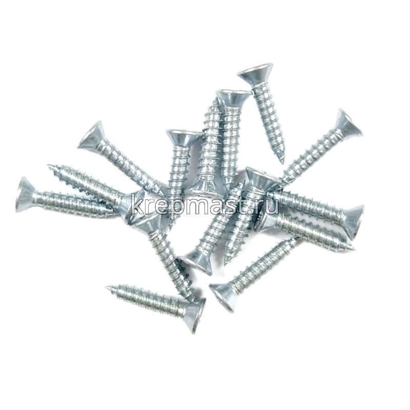 Саморез по металлу с потайной головкой и острым концом DIN 7982 3.9 x 19 применяется для крепления стальных и других листовых материалов (дерево, фанера) к металлическим и деревянным несущим конструкциям.