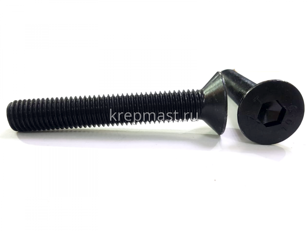 Винт с потайной головкой и внутренним шестигранником DIN 7991 М14 х 90 классом прочности 10,9 черн. с полной резьбой применяется в качестве деталей соединенияв машиностроении, станкостроении, строительстве. Такой высокопрочный винт устанавливается для крепления в зенкованное отверстие с метрической резьбой в любые металлы и твердые пластмассы.