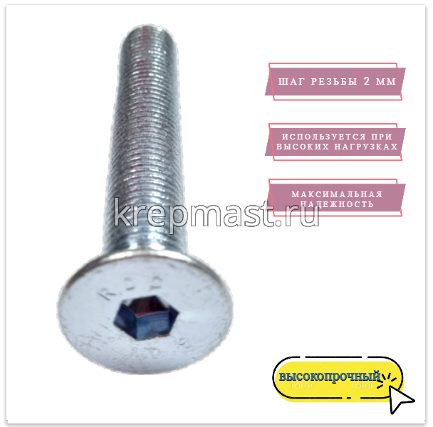 Винт с внут. шестиг. потай голов. 16х100 кл.пр.10,9 п/р DIN 7991 в интернет-магазине «Мастер Крепежа» по цене 358 руб. Более 5 наименований товаров в наличии в категории Винт DIN 7991 с внутр.шестигр. (потай) 16мм. Купить винт с внут. шестиг. потай голов. 16х100 кл.пр.10,9 п/р din 7991 в Набережных Челнах выгодно Вы можете on-line на нашем сайте, или отправив заявку по почте, а также по телефону или в пункте выдачи компании г. Казань, ул. Татарстан, 9, магазин "Мастер Крепежа". Доставка по Республике Татарстан и другие регионы РФ.