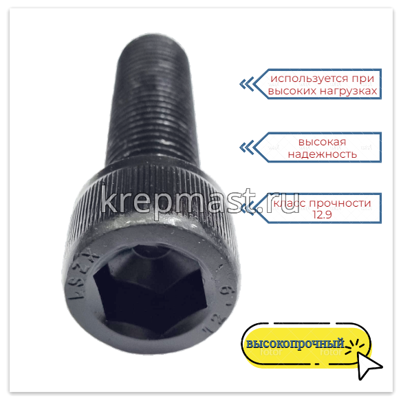 Винт с внутр.шестигранником 20 х 70 черный кл.пр.12.9 п/р DIN 912 в интернет-магазине «Мастер Крепежа» по цене 402 руб. Более 15 наименований товаров в наличии в категории Винт с внутр.шестигранником 20мм. Купить винт с внутр.шестигранником 20 х 70 черный кл.пр.12.9 п/р din 912 в Набережных Челнах выгодно Вы можете on-line на нашем сайте, или отправив заявку по почте, а также по телефону или в пункте выдачи компании г. Казань, ул. Татарстан, 9, магазин "Мастер Крепежа". Доставка по Республике Татарстан и другие регионы РФ.