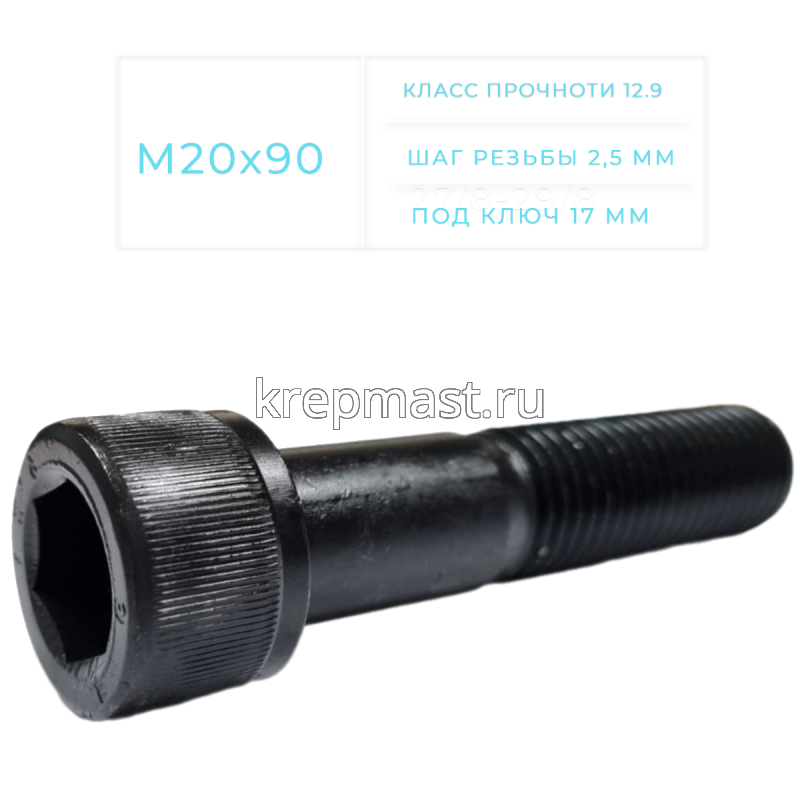 Винт с внутр.шестигранником 20 х 90 черный кл.пр.12.9 н/р DIN 912 в Набережных Челнах