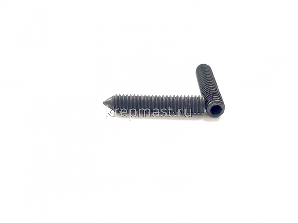 Винт установочный с внутренним шестигранником и заостренным концом DIN 914 5 х 20 класс прочности 12.9 применяется для стопорения различных деталей между собой. Требуется предварительное сверление и нарезание резьбы диаметром 5 мм. Установочный винт имеет класс прочности 12.9.