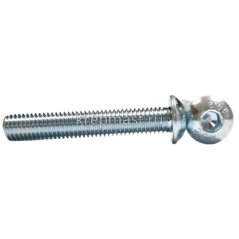 Винт с полукруглой головкой и внутренним шестигранником под ключ ISO 7380 10 х 60 классом прочности 10.9 применяется в производственных и промышленных областях (очень популярен в мебельном производстве) совместно с шайбами, гайками и втулками с соответствующим размером резьбы.