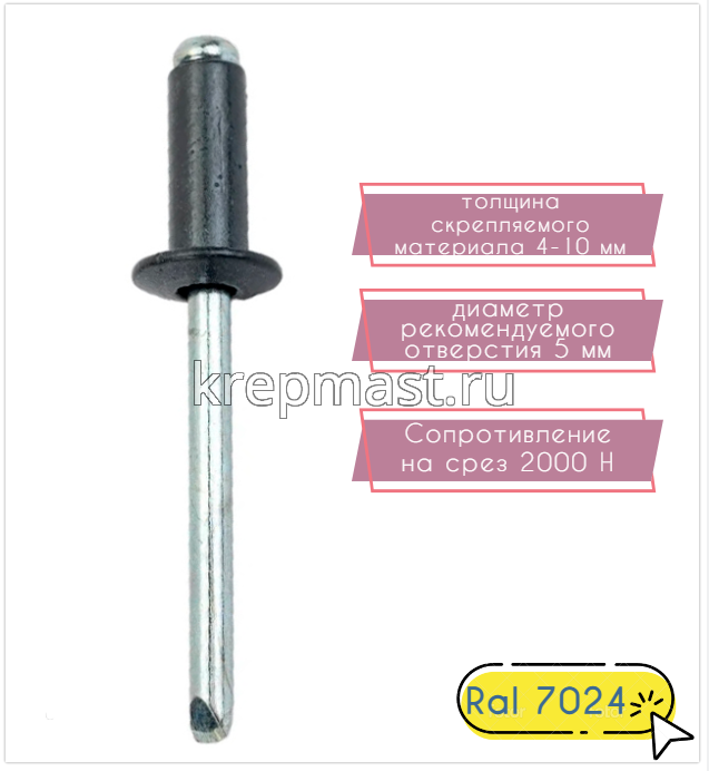 Заклёпка алюминий/сталь 4,8х12 RAL 7024 в Набережных Челнах