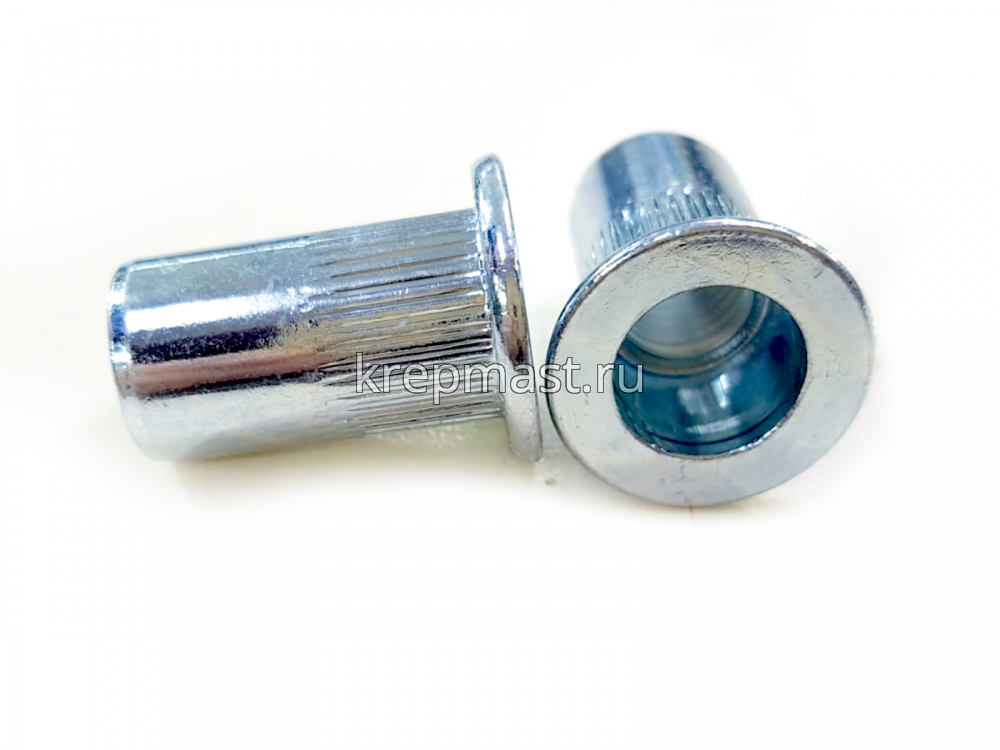 Клепки резьбовые М10 изготавливают из прочной и устойчивой к воздействию коррозии оцинкованной стали.