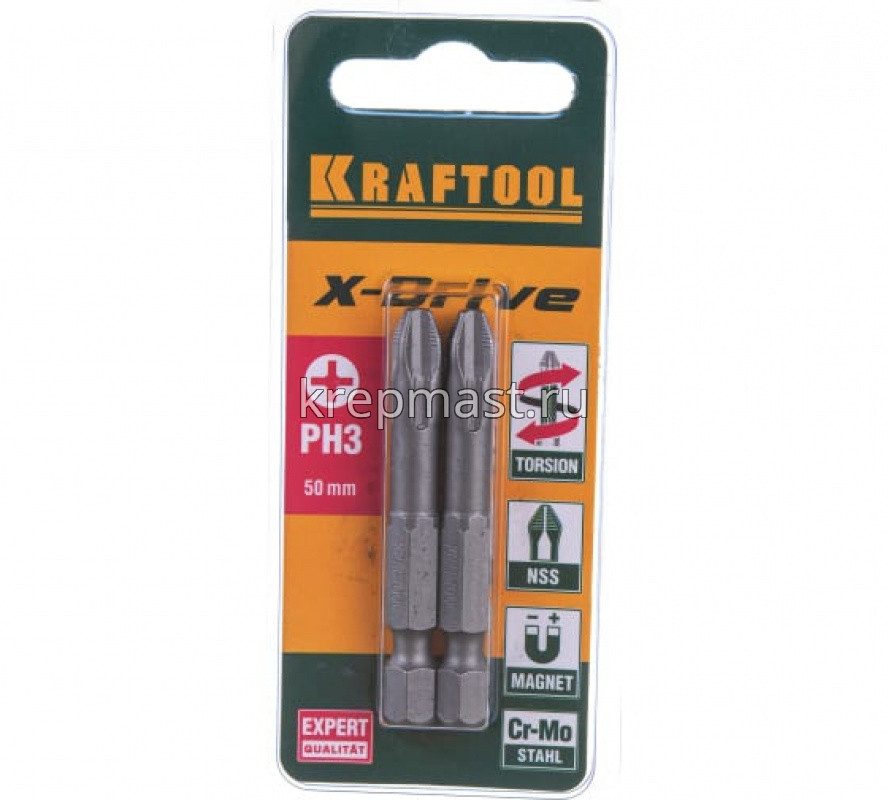 Кованые профессиональные биты KRAFTOOL PH 3x50 используются для монтажа и демонтажа резьбовых соединений.