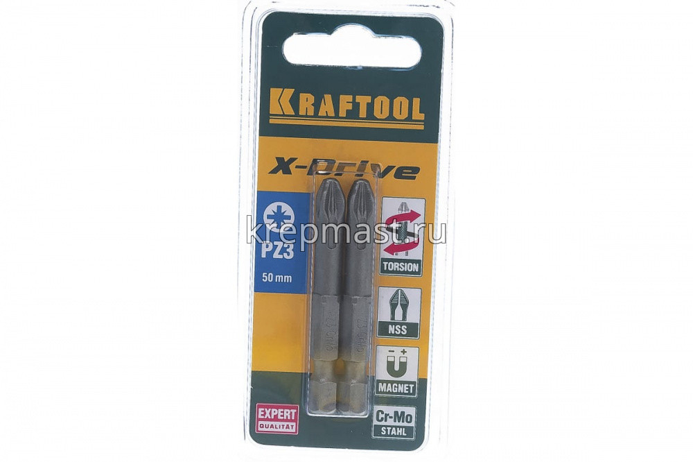 Кованые профессиональные биты KRAFTOOL PZ 3x50 используются для монтажа и демонтажа резьбовых соединений.