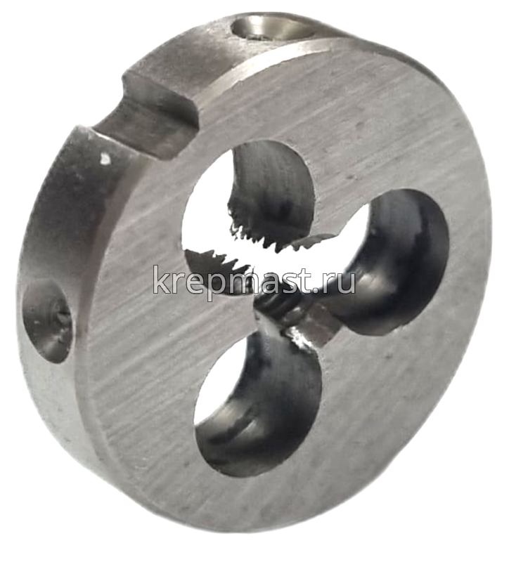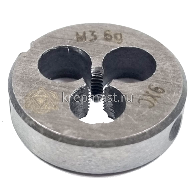 Плашка М3 х 0,5 мм круглой формы используется для нанесения резьбы на заготовку. Обладает высокими механическими свойствами, так как изготовлена из инструментальной стали.