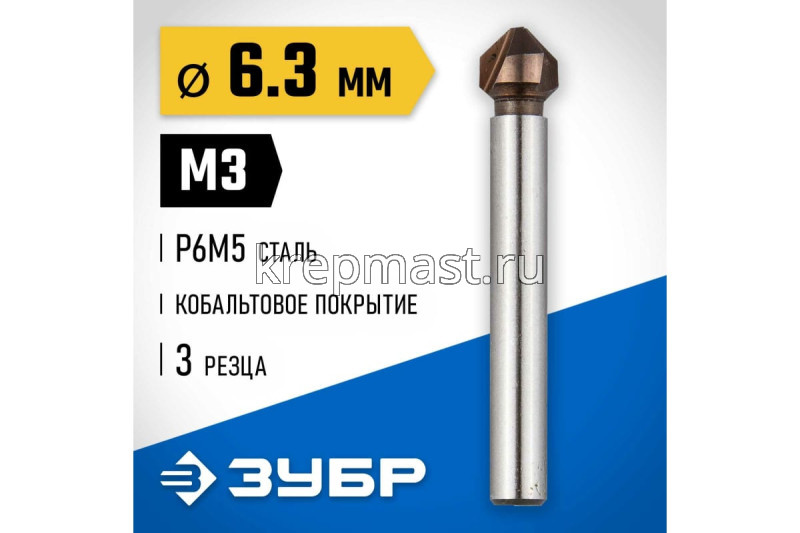 Зенкер ЗУБР конус, цилиндр.хвост. 3мм(д.6,3х45мм) в Набережных Челнах