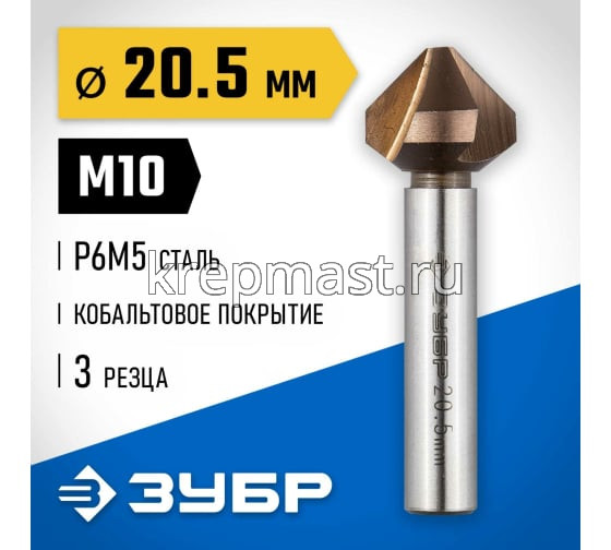 Зенкер ЗУБР конус, цилиндр.хвост.10мм(д.20,5х63мм)