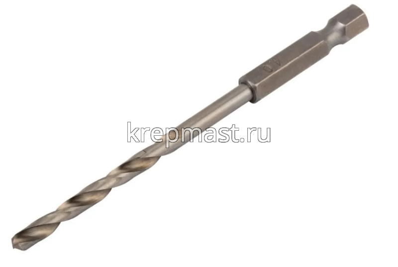 Сверло по металлу 4,0 мм хвостовик под биту изготовлено из усиленной полированной быстрорежущей стали (Р6М5). Данная оснастка имеет шестигранный хвостовик под биту 1/4", покрытая никелем. Такое сверло надежно крепится к инструменту и служит долго.