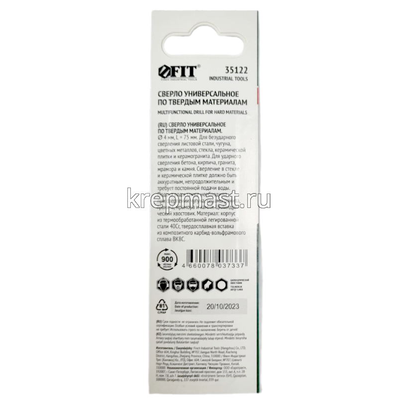 Сверло универсальное 4х75мм (сталь, чугун, цв.мет, стекло, керамогранит) в интернет-магазине «Мастер Крепежа» по цене 136 руб. Более 13 наименований товаров в наличии в категории СВЕРЛА универсальные (опалубочные). Купить сверло универсальное 4х75мм (сталь, чугун, цв.мет, стекло, керамогранит) в Набережных Челнах выгодно Вы можете on-line на нашем сайте, или отправив заявку по почте, а также по телефону или в пункте выдачи компании г. Казань, ул. Татарстан, 9, магазин "Мастер Крепежа". Доставка по Республике Татарстан и другие регионы РФ.