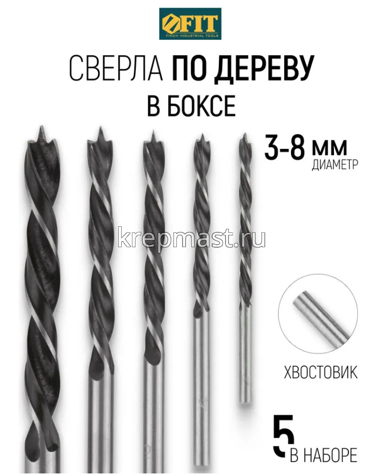 Набор сверел по дереву 5шт спираль FIT (3-4-5-6-8мм) в Набережных Челнах