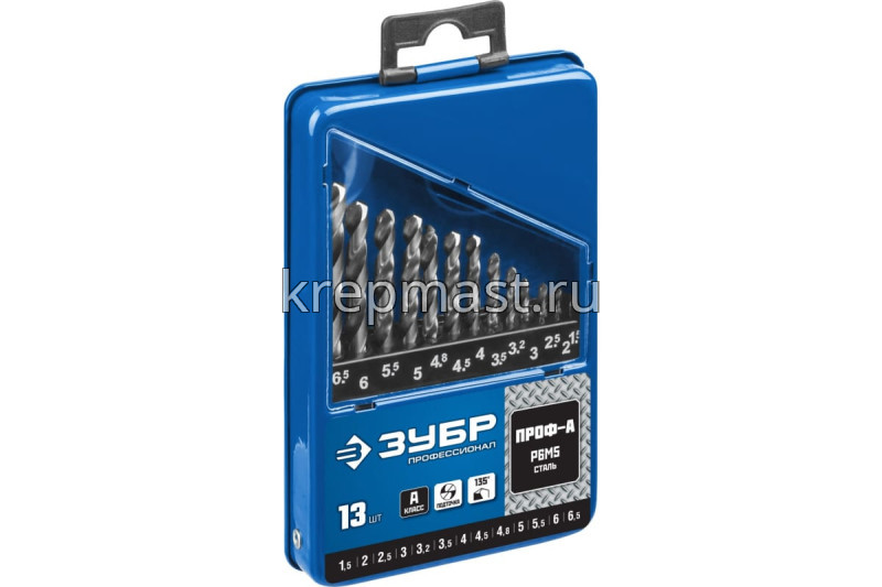Набор сверел по металлу 13шт ЗУБР (1,5-6,5мм) металл.бокс в Набережных Челнах