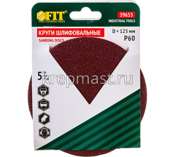 Круги шл.ал-окс. 125мм с липуч. (Р- 60) 5шт без ОТВЕРСТИЙ
