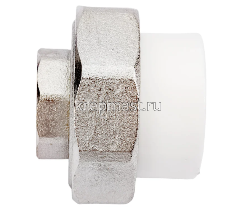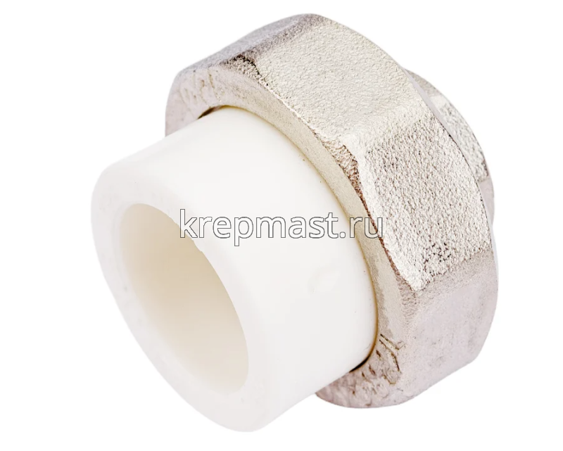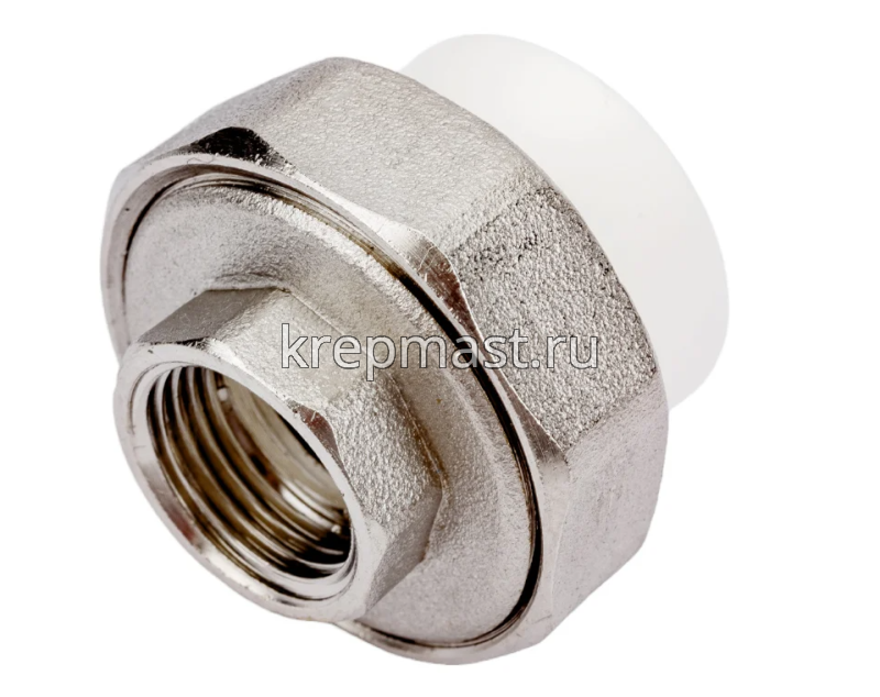 Комбинированная разъемная муфта (американка) ВР D 25  - 1/2 п/п - разъемная муфта состоит из двух элементов, один из которых приваривается к полипропиленовой трубе посредством раструбной сварки, другой - соединяется с оборудованием или арматурой при помощи трубной резьбы.