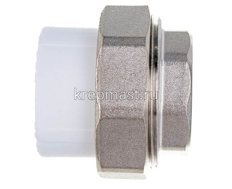 Комбинированная разъемная муфта (американка) ВР D 32- 1 п/п - разъемная муфта состоит из двух элементов, один из которых приваривается к полипропиленовой трубе посредством раструбной сварки, другой - соединяется с оборудованием или арматурой при помощи трубной резьбы.