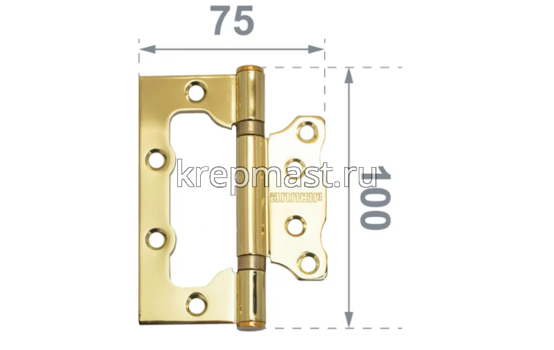 Универсальная петля без врезки 100x75 золото используется при установке окон и других легких конструкций. Они изготовлены из инструментальной стали, благодаря чему обладают прочностью и устойчивостью к нагрузкам.