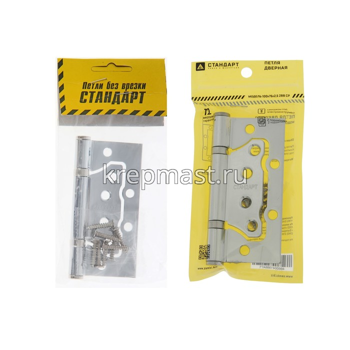 Петля универс. БЕЗ ВРЕЗКИ 100х75х2,5 хром в интернет-магазине «Мастер Крепежа» по цене 154 руб. Более 9 наименований товаров в наличии в категории Петли универсальные / без ВРЕЗКИ. Купить петля универс. без врезки 100х75х2,5 хром в Набережных Челнах выгодно Вы можете on-line на нашем сайте, или отправив заявку по почте, а также по телефону или в пункте выдачи компании г. Казань, ул. Татарстан, 9, магазин "Мастер Крепежа". Доставка по Республике Татарстан и другие регионы РФ.
