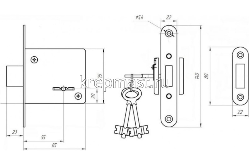 Замок врезной ЗВ8-4.1 3 ключа российской компании "Птимаш" для установки на межкомнатные входные и деревянные двери. Устанавливается как под правое, так и под левое открывание двери. В данной модели не предусмотрена универсальная защёлка для фиксации двери. Тип механизма секретности - сувальдный. Высокое качество конструкции обеспечивают надёжную работу изделия. Особенности: Один прямоугольный ригель. Удаление ключевого отверстия (Backset) - 55 мм.