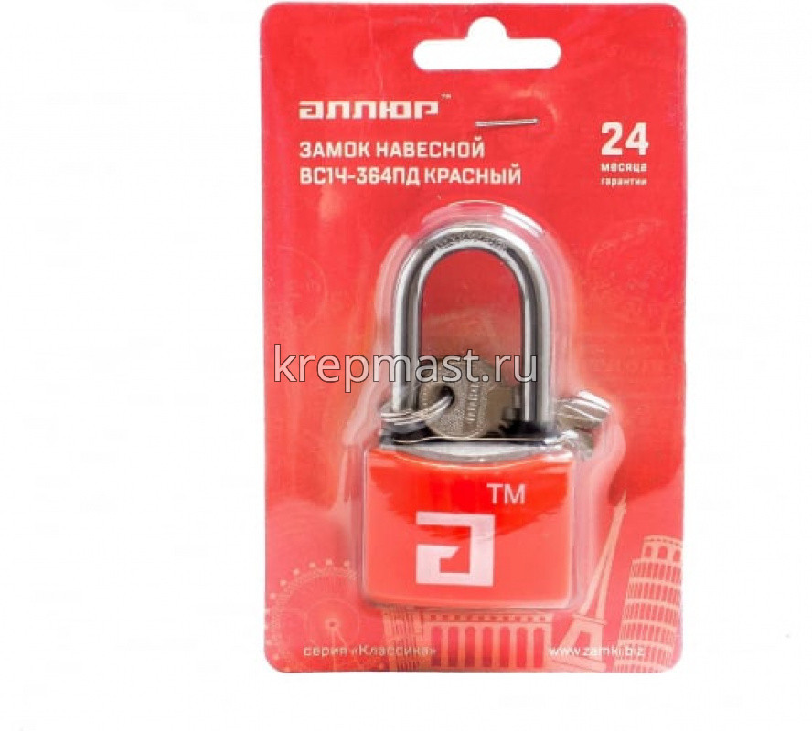Замок навесной АЛЛЮР ВС1Ч-364ПД d.6мм КРАСНЫЙ дл.дужка в Набережных Челнах
