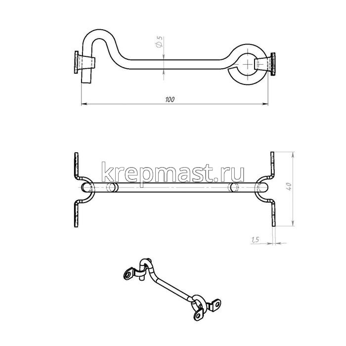 Ветровой круглый крючок КР 100 мм служит для закрывания дверей, ставен, ворот. Крючок длиной 100 мм и толщиной 5 мм надежно фиксирует створки в закрытом положении.
