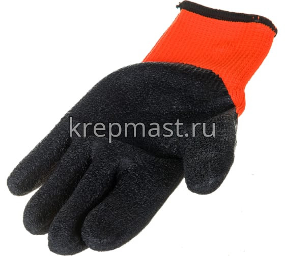 Перчатки акриловые утеплённые с рельефным латексным покрытием изготовлены из синтетического материала, без швов. Утепленные перчатки имеют махровую внутреннюю поверхность, которая обеспечивает дополнительную защиту рук от холода