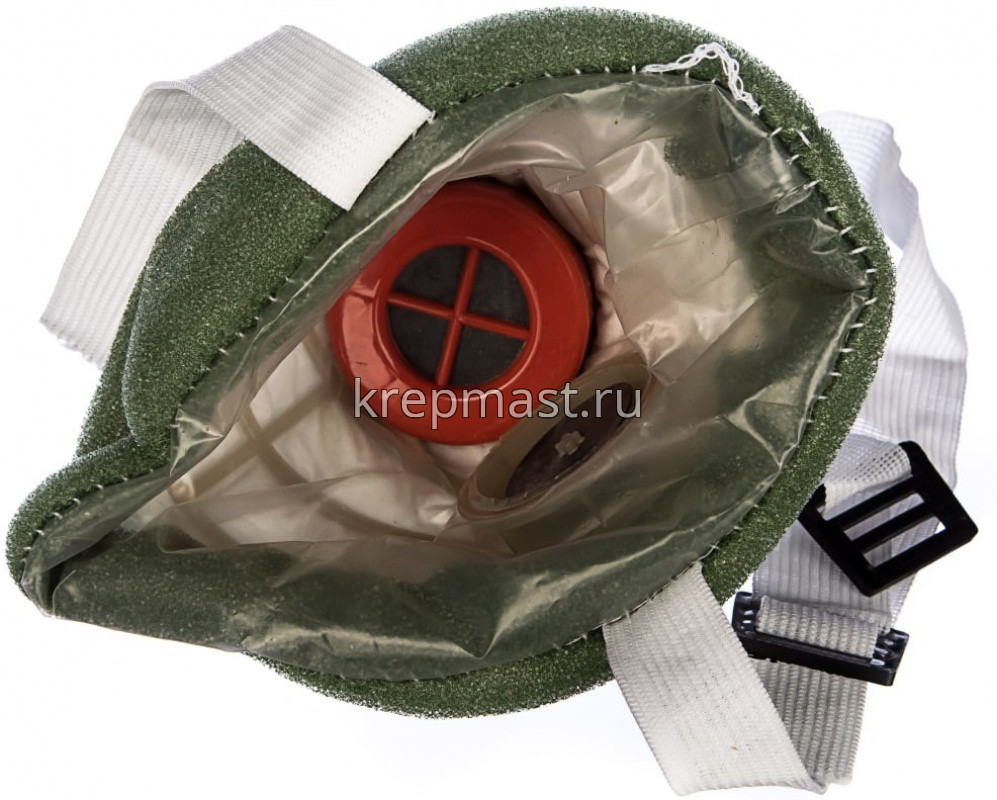 Наружный слой данной модели респиратора толщиной 4 мм сделан из пропитанного пылеотталкивающим раствором поролона, средний слой выполнен из фильтрующего материала ФПП-15-1,5, а внутренний - из полиэтиленовой пленки.