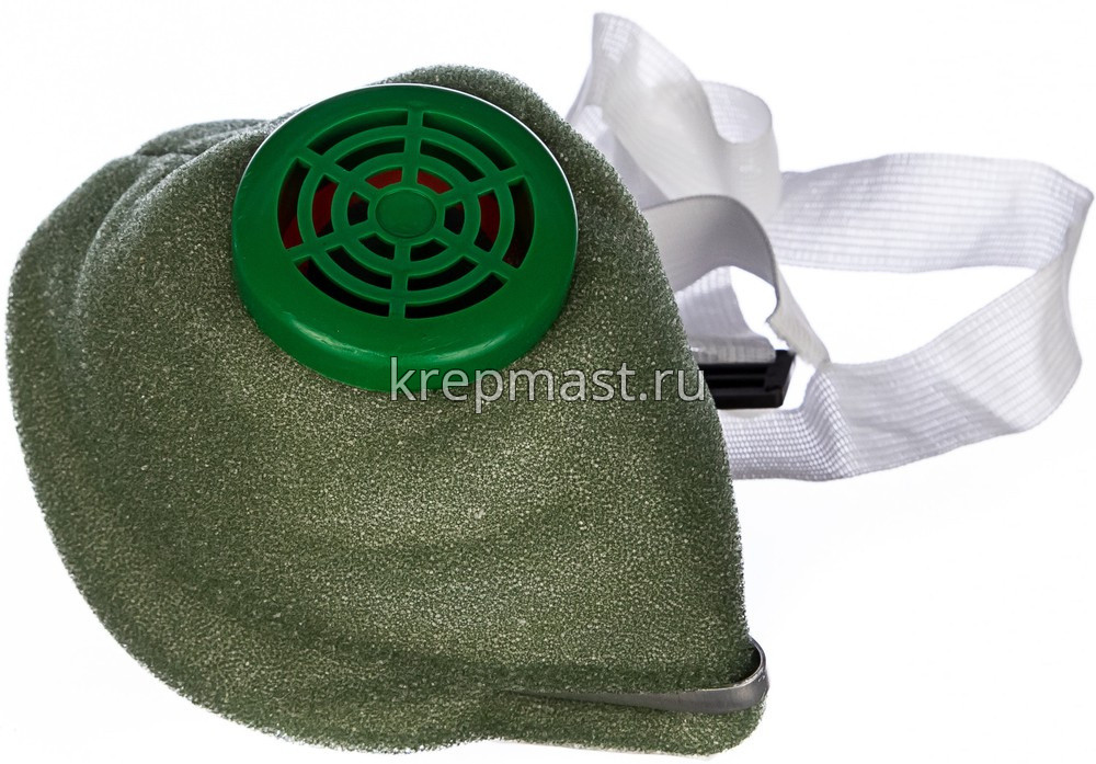 Респиратор представляет собой трехслойную фильтрующую полумаску с клапанами вдоха и выдоха, носовой зажим и регулируемые лямки - для плотного прилегания к лицу.