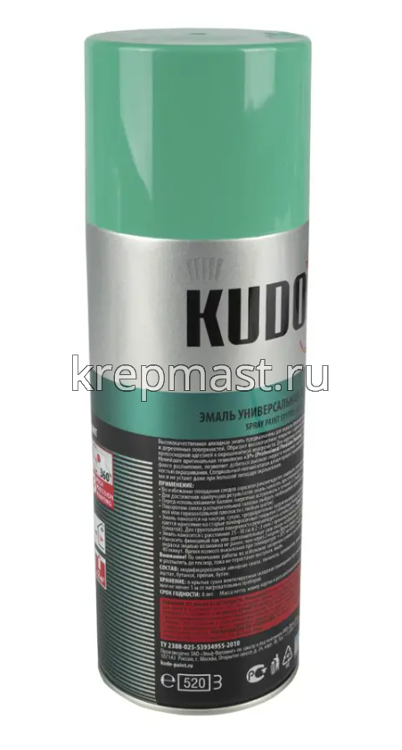 Универсальная алкидная краска эмаль-аэрозоль KUDO RAL 6002 светло-зеленая 520 мл удобна в нанесении за счет спрей-системы, используется для покраски стекла, пластика, бумаги, дерева, металла и др. Краска быстро высыхает и обладает высокой адгезией. Применяется для наружных и внутренних работ. Краска устойчива к ультрафиолету.