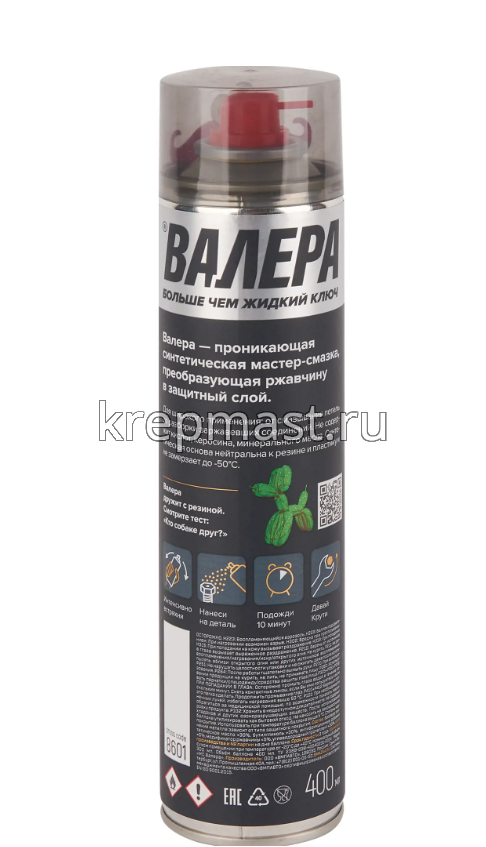 Смазка-мастер ВАЛЕРА 400мл флакон аэрозоль проникающая синтетическая мастер-смазка, преобразующая ржавчину в защитный слой. Это продукт, сочетающий преимущества жидкого ключа, смазки и преобразователя ржавчины. Подходит для широкого применения: от смазывания петель до разборки заржавевших соединений.