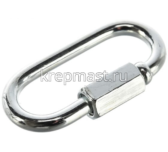 Соединитель цепей с гайкой 3 мм (карабин винтовой) - cтальной карабин "звено цепи" с винтовой муфтой (фиксатором) применяется для быстрого и надежного крепления тросов и цепей между собой или к чему-либо. Размер карабина определяется по диаметру поперечного сечения проволоки (прутка) и составляет 4 мм.