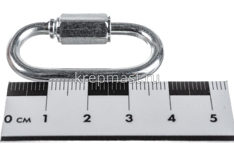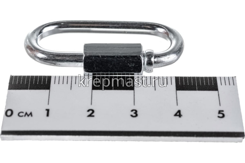 Соединитель цепей с гайкой 4мм (карабин винтовой) - cтальной карабин "звено цепи" с винтовой муфтой (фиксатором) применяется для быстрого и надежного крепления тросов и цепей между собой или к чему-либо. Размер карабина определяется по диаметру поперечного сечения проволоки (прутка) и составляет 4 мм.