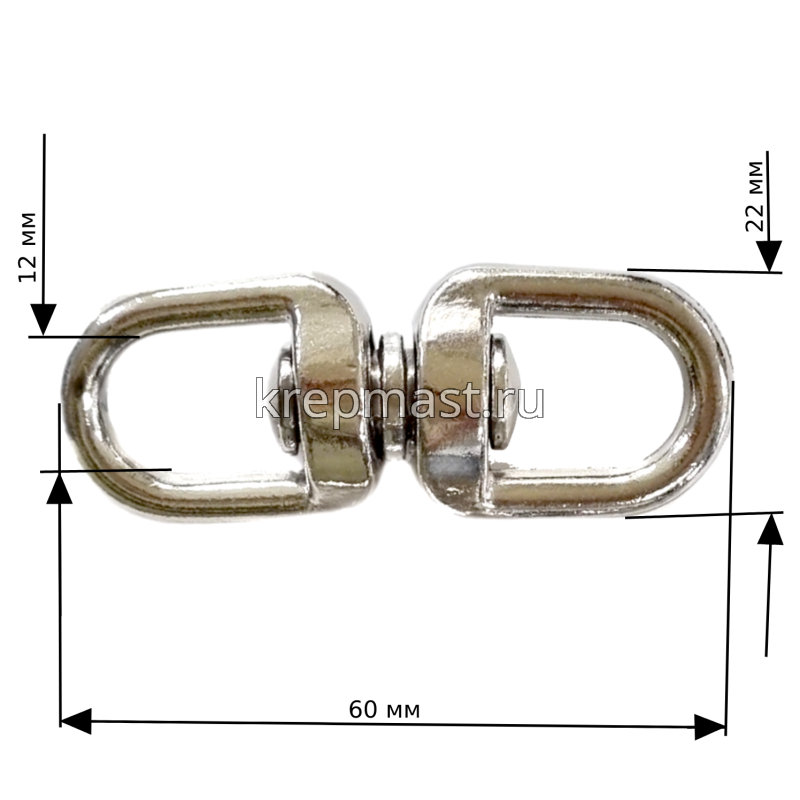 Вертлюг 4,5 мм —соединительное звено двух частей механизма (или звеньев цепи), позволяющее каждой из них вращаться вокруг своей оси, например звено между подъёмным механизмом и грузом. Предотвращает скручивание веревки, тем самым избавляет от лишних нагрузок.